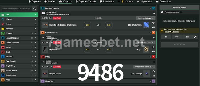 O 9486 oferece uma grande seleção de opções de apostas em e-sports com probabilidades competitivas